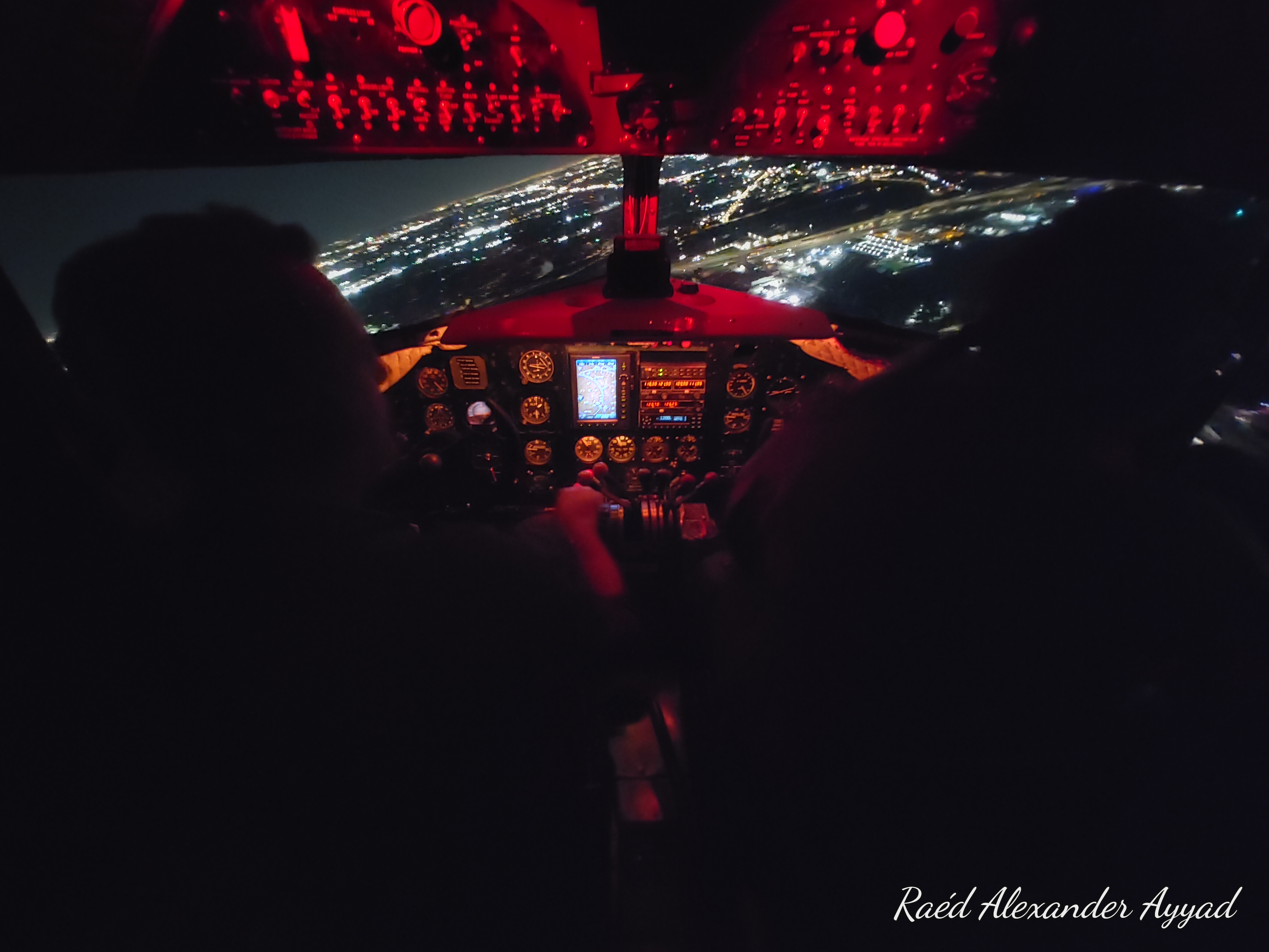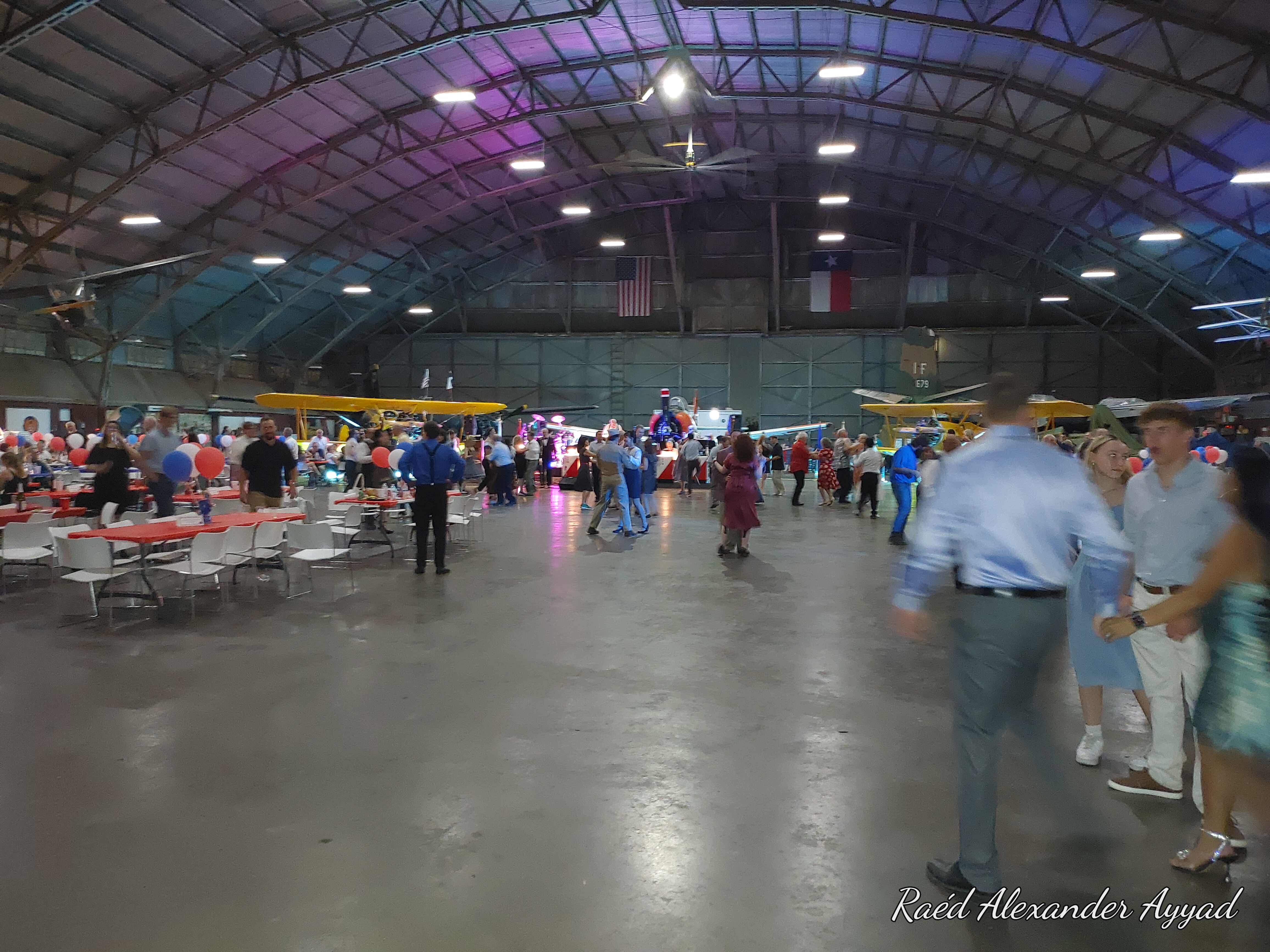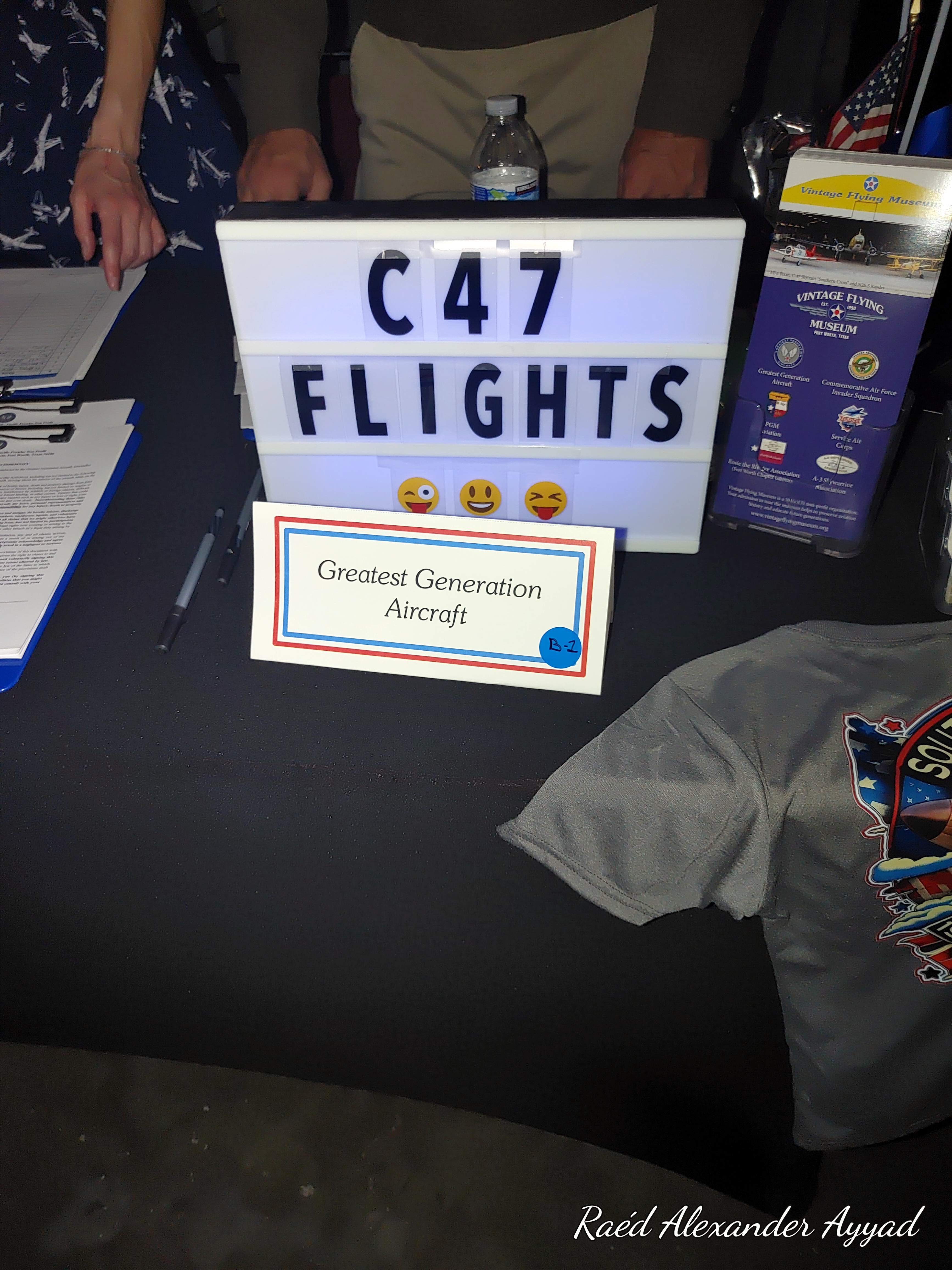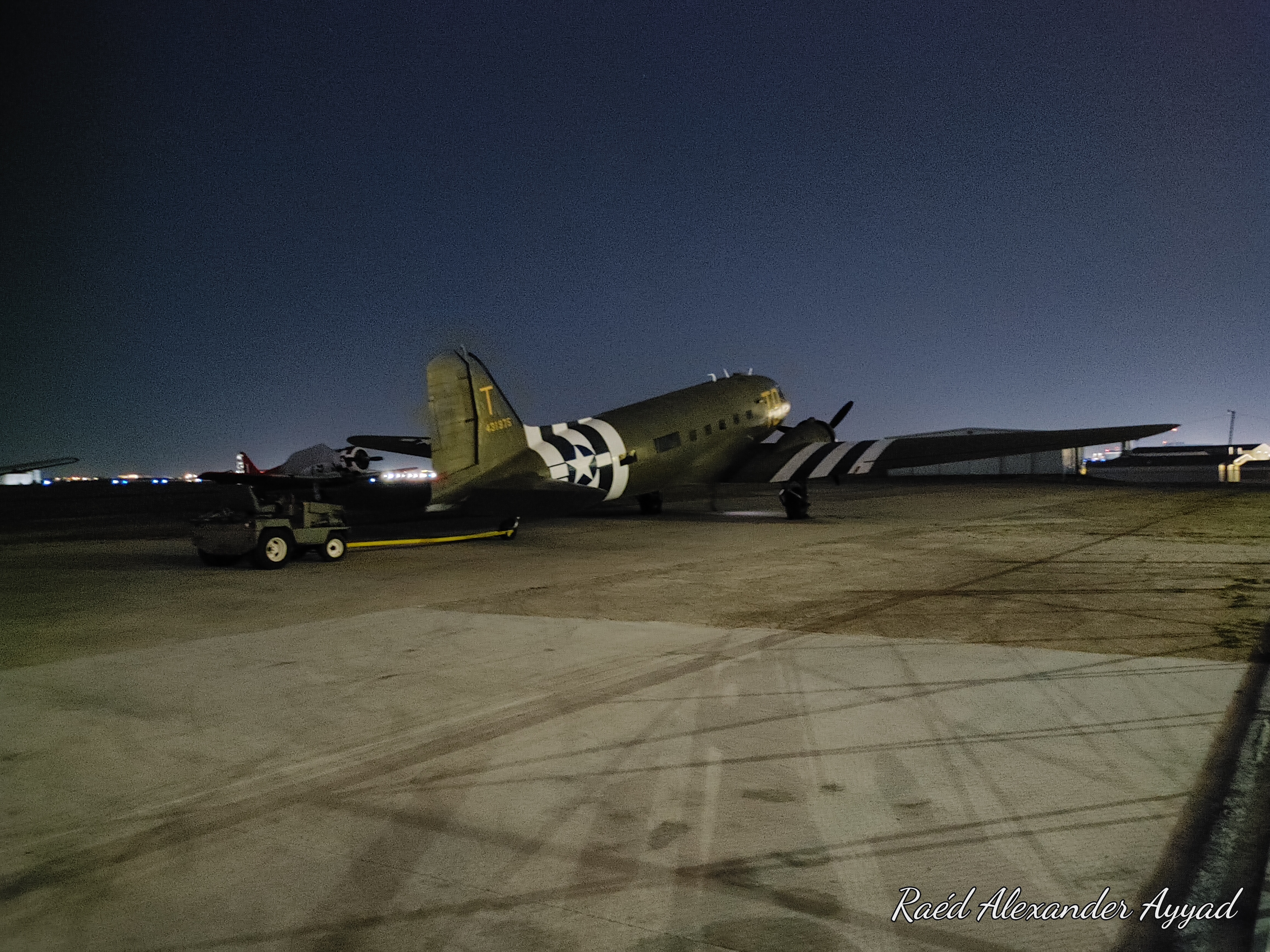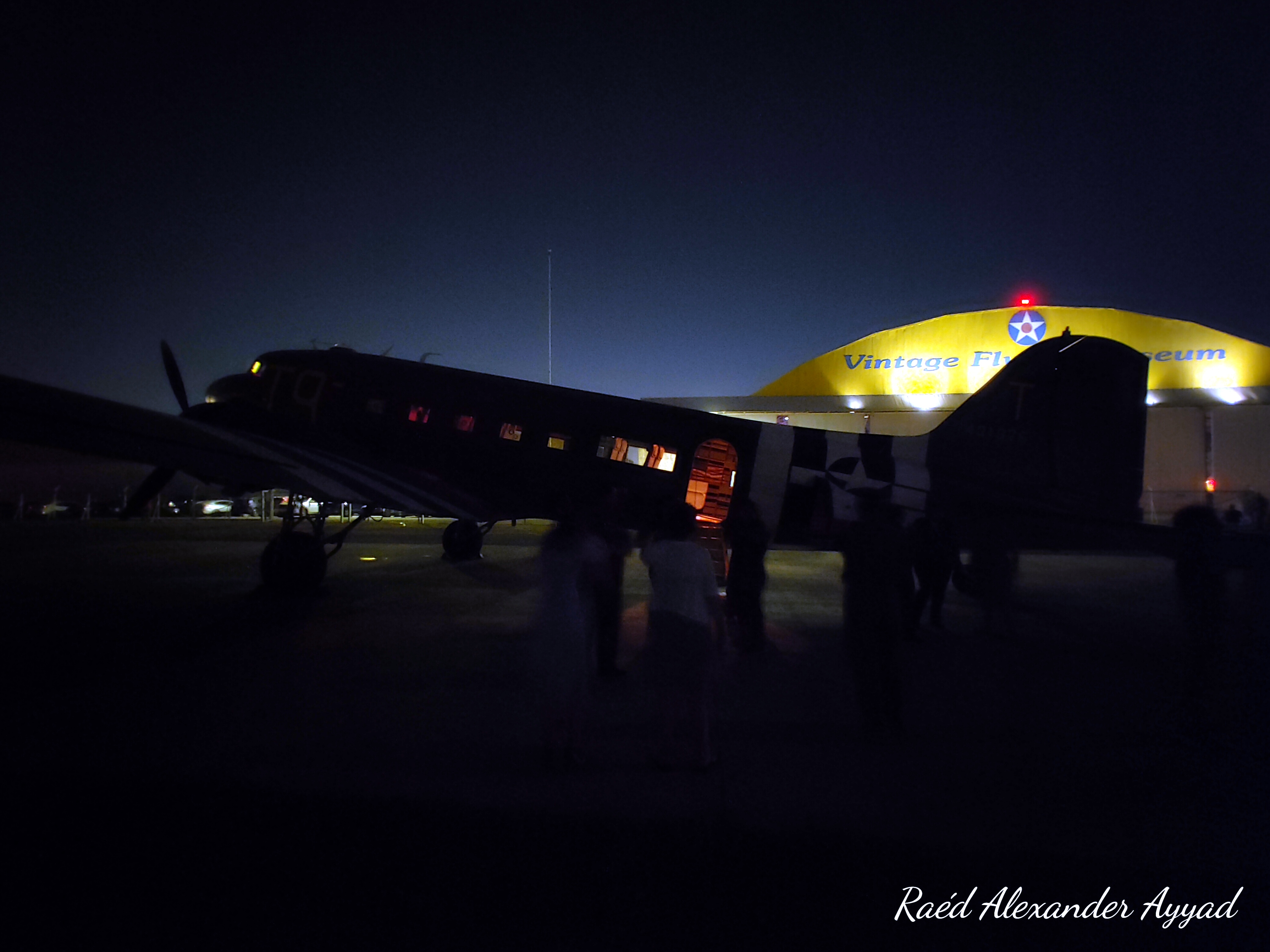 While I was looking forward to spending some time with good friends, frankly, flying on the 1941 Douglas C-47 was the next best thing after dancing with Grace... well, she danced... I'm not sure what I was doing! 😂 I learned that this particular aircraft, which is, now, configured to carry 17 passengers, was ordered by TWA for passenger service with Wright Cyclone engines and was completed in December of 1941. Due to the attack on Pearl Harbor, many aircraft were pressed into military service and 6315 was no exception. Its first job in service was as a troop carrier and paratroop trainer. Its official designation by the Army Air Corps was C-49J due being equipped with Wright engines in place of the standard Pratt and Whitney engines. After the war, it changed hands many times. Immediately following the war, it was returned to its original purpose of passenger carriage. It was owned by Chicago and Southern Airlines until 1953 when the airline and all its planes were bought by Delta. It flew under Delta colors until it was sold to the President of Mexico. At this time the interior received a makeover to suit presidential status, including upgrades such as a wrap-around couch, a bathroom, complete galley, and the portrait windows. The engines were also updated at this time to the higher horsepower 1820-72 engines. Following its presidential service, it was purchased by a skydiving operator who immediately ripped out all the interior upgrades in an effort to make the plane as light as possible and installed even larger engines, a pair of 1820-76Ds, (1475hp each) the same engines that are installed on the HU-46 Albatross! The Douglas C-47 Skytrain or Dakota (RAF designation) remained in front-line service with various military operators for many years. It was produced in approximately triple the numbers as the larger, much heavier payload Curtiss C-46 Commando, which filled a similar role for the U.S. military. Approximately 100 countries' armed forces have operated the C-47 with over 60 variants of the aircraft produced. As with the civilian DC-3, the C-47 remains in service in the present day, over 80 years after the type's introduction. You can learn more about this aircraft by visiting the dedicated Wikipedia page. Back to this event... A few of us boarded the aircraft shortly after 20h00... as usual, there were a couple of stragglers who kept the flight waiting for an extra 10 minutes while they were dancing, but, would I blame them? No! This wasn't my first time onboard a vintage WW-2 aircraft (more can be found at http://www.texaspilots.org/Album.html), but this was to be my first night flight on board such a beautiful piece of equipment! What a gal!