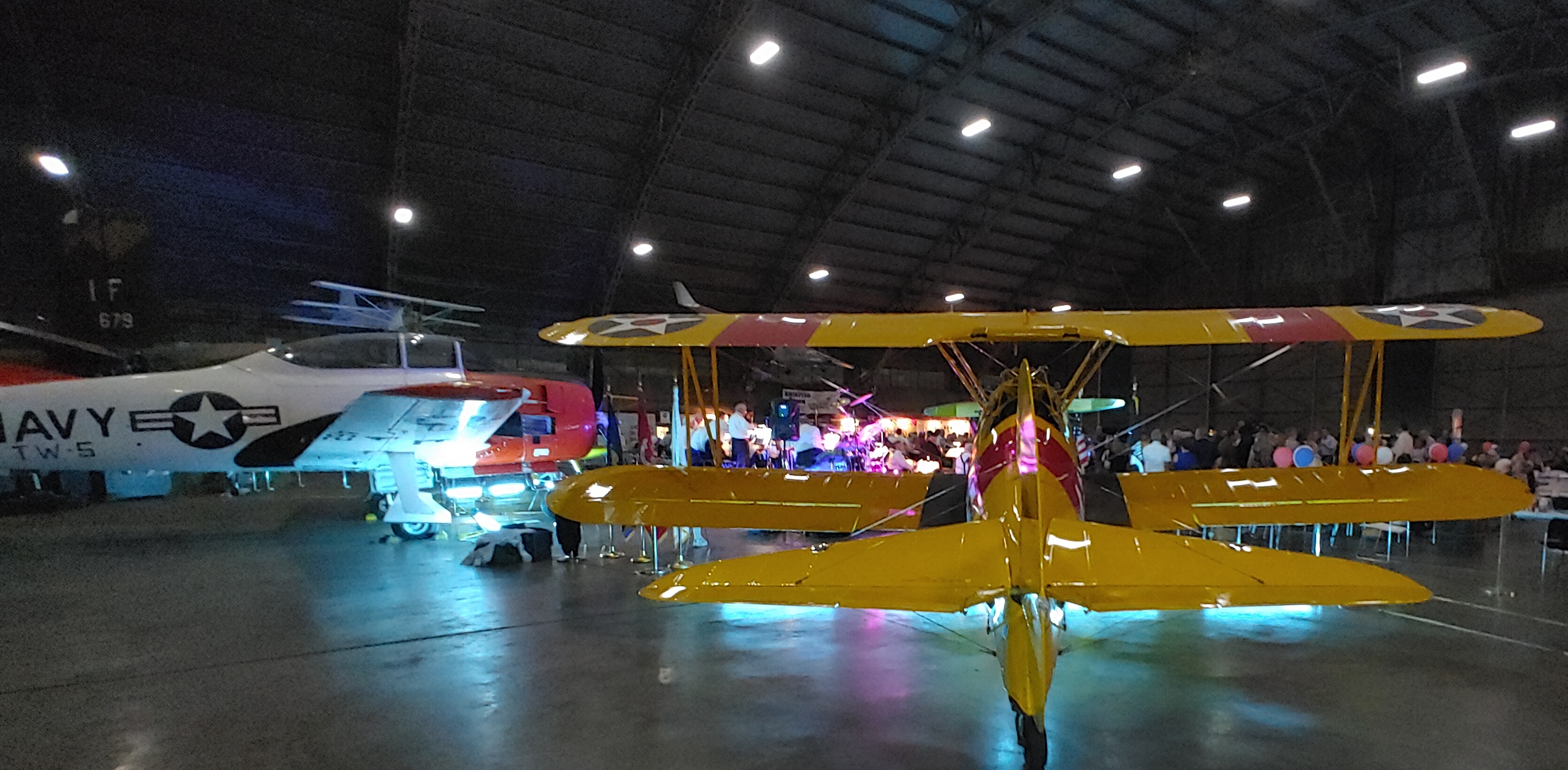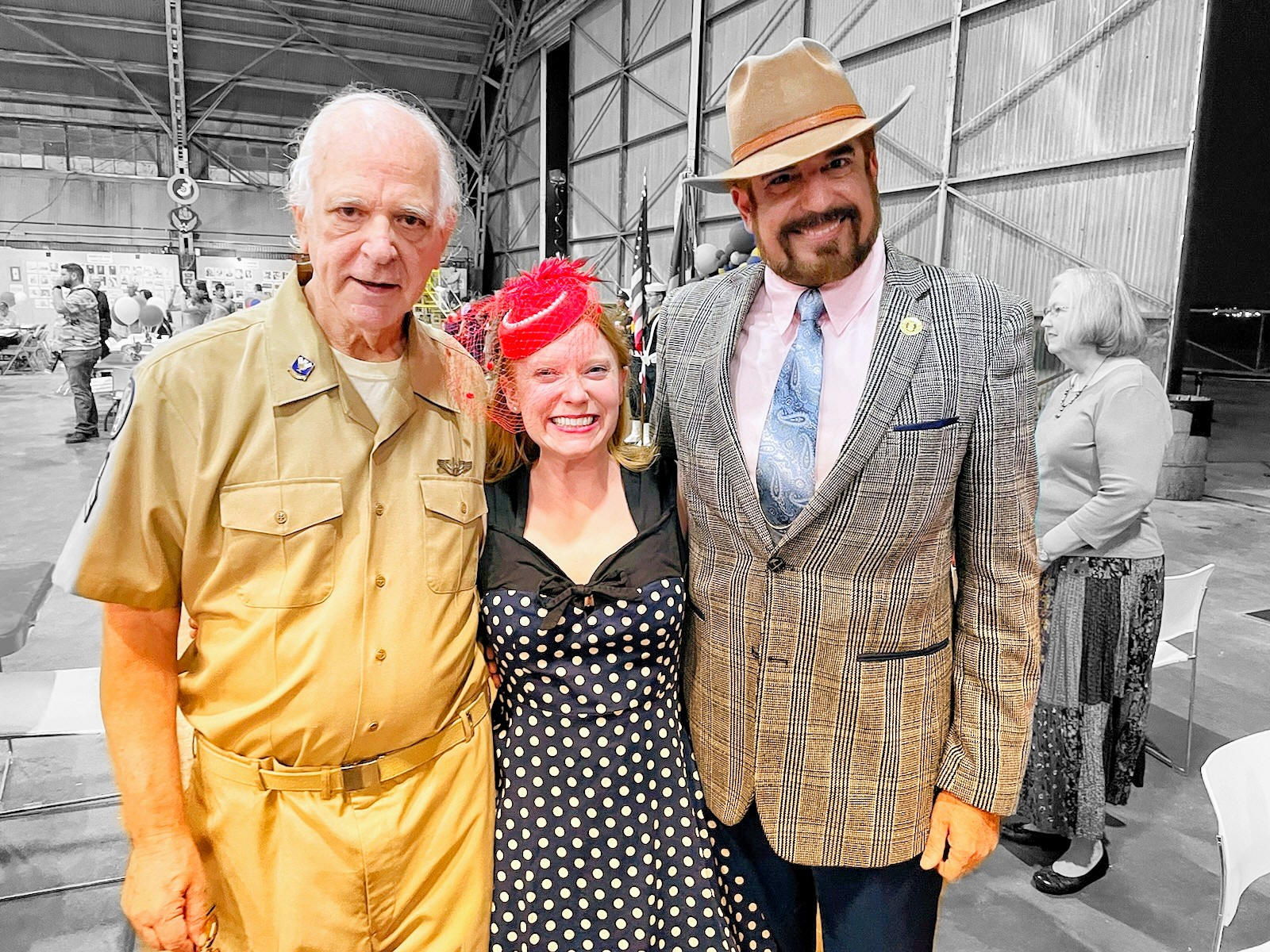 This was the 32nd Annual Big Band Hangar Dance... It's an annual event that takes place in October of every year, and includes dinner and several activates besides the (Swing) dancing event! The dinner began at 6:30pm and lasted until 8:30pm. A Silent Auction was also held, along with the Douglas 1941 C-47 flights (Southern Cross, T-431975). Guests were encouraged to come dressed in their favorite vintage styles and compete for the "Best Dressed" award. This year, I attended as a civilian! 😄 The event lasted till 11pm. I'd like to start by thanking my dear friend Grace W. for extending the invitation this year, and, also. treating me to the event! While I was planning to attend with my friend and brother Douglas (Doc) Dow (or as I often call him: Double-D), it's always a special thing when a beautiful woman, and a phenomenal dancer, asks you out! 😄 In fact, in the hustle and bustle of the daily grind, I almost forgot about the event, and while I was reminded of it by Doug the day before, I still didn't prioritize it as I used to do in the past, due to some important work at hand that I wanted to wrap up. Grace's call was the clincher--although I had shared with her the same conditions that I did with Doug... I needed to finish the project at hand. I managed to wrap up my work in the nick of time, dressed-up for the event, sent her an attendance confirmation text, and rocketed out to meet with Doug (we car-pooled). In the excitement, I actually forgot my fountain pen, my bagged Nikon DLSR and Canon video camera, and my business card case, on the couch, after I embarked on a search looking for my Ray-Bans, following a change of jackets! So, as you view the images, please heave mercy, and take that into consideration... I had to use my phone's camera. My photography skills are notably better than what these images may reflect! 😅